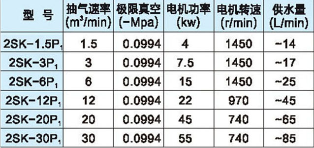 2SK-p1水環(huán)真空泵系列技術(shù)參數(shù)