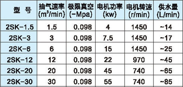 2SK水環真空泵技術參數